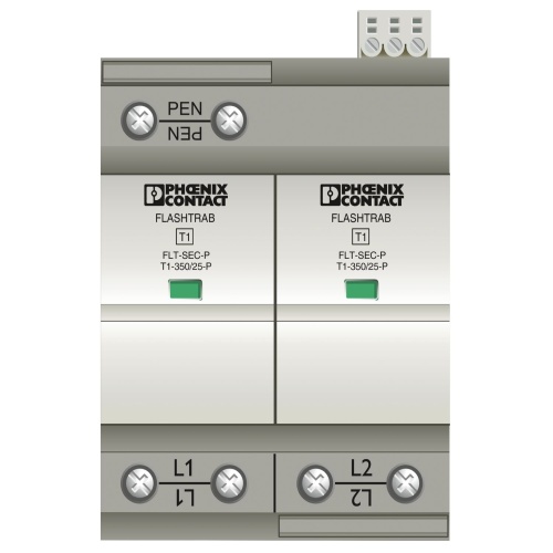 FLT-SEC-P-T1-2C-350/25-FM Phoenix 2905416 Combination type 240/415 VAC Plug-in/screw connection via COMBICON,Screw terminal blocks,Fork-type cable lug Combination type 1/2 protective device Surge Protection