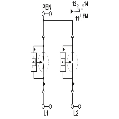 Phoenix Contact 2905416 A plug-in lightning arrester suitable for use in 2-phase power supply networks is available without leakage current, meeting the standards of Type 1/Class I, where both earth and neutral conductors are combined into a single conductor (L1, L2, PEN).