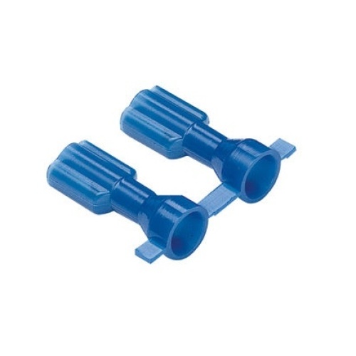 Panduit DNF14205FIBX-2K The vibration resistant female disconnect is made of brass and is tin-plated. It is fully insulated in a blue, standard receptacle housing and has an expanded wire entry area for wires with large outside diameters. It has a tab size of 0.187/0.205 x 0.032" (4.8/5.2 x 0.8 mm) and supports a wire range of 16-14 AWG (1.5-2.5 mm²). It is 0.87" (22.1 mm) long and 0.31" (7.9 mm) wide. The disconnect has an expanded barrel configuration and butted seam barrel. It comes in reels of 2000 pieces.