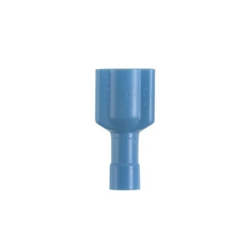 Panduit DPF14-250FIMB-D The vibration resistant DiscoGrip™ male disconnect is made of brass and is nickel-plated. It is fully insulated in blue premium nylon oversized housing. It has a tab size of 0.250 x 0.032" (6.3 x 0.8 mm) and supports a wire range of 16-14 AWG (1.5-2.5 mm²). It is 0.92" (23.4 mm) long and 0.46" (11.7 mm) wide. The disconnect has a funnel entry barrel configuration and a butted seam barrel. It comes in boxes of 500.