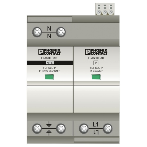 FLT-SEC-P-T1-1S-350/25-FM Phoenix 2905415 Combination type 240 VAC Plug-in/screw connection via COMBICON,Screw connection,Fork-type cable lug Combination type 1/2 protective device Surge Protection
