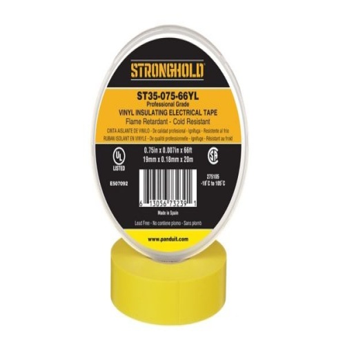Panduit ST35-075-66YL StrongHold™ ST35-075-66YL Electrical Tape, Yellow, PVC, Prof Grade, .75", 0.007"