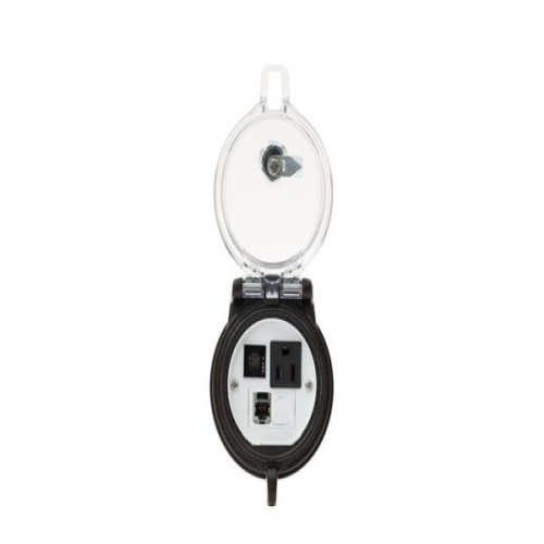 Panduit DAP3BC-S3-4 Data Access Port, 3in. Base, Simplex Outlet, 3 Amp Circuit Breaker, CAT 5e Shielded Coupler