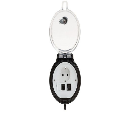 Panduit DAP4BC-F3-5 Data Access Port, 4in. Base, Schuko Outlet, CAT 5e Coupler, 3 Amp Breaker