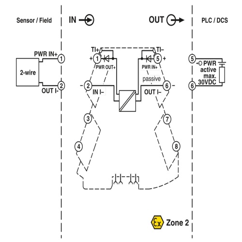 Phoenix Contact 2906447 A one-channel output, loop-powered two-way repeater features a plug-in connection technology allowing for electrical isolation of analog signals, with an input signal range of 0-4 mA to 20 mA, utilizing push-in connection technology.