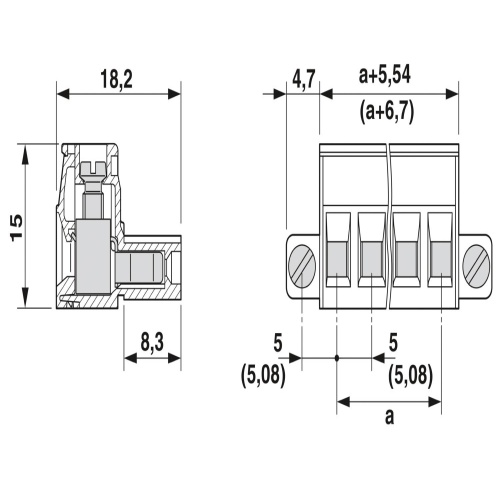 Phoenix Contact 5435705 The PCB connector has a nominal cross-section of 2.5 mm² and is colored signal gray. It can handle a maximum current of 12 A and is rated for a voltage of up to 320 V. The contact surface is made of tin, and the connection type is a socket with screw connections secured by tension sleeves. There are 19 potential contacts along one row in a pitch of 5 mm, requiring 19 screws per connector. In its packaging, it includes a screw flange for secure mounting via screws.