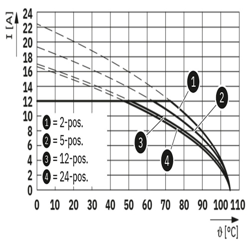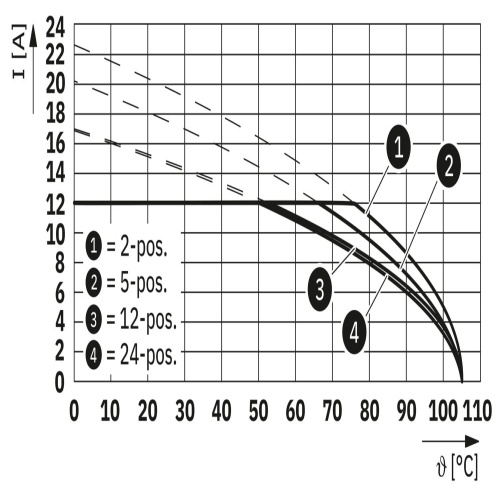 Phoenix Contact 5435941 The PCB connector has a nominal cross-sectional area of 2.5 mm² and is colour-coded as signal gray, capable of handling up to 12 A of current while rated at 320 V. The contact surface features tin (Sn) plating, uses a socket connection type with 24 individual potentials, arranged in one row with 24 positions and connections, within the BASICLINE 2,5 plug-in system.