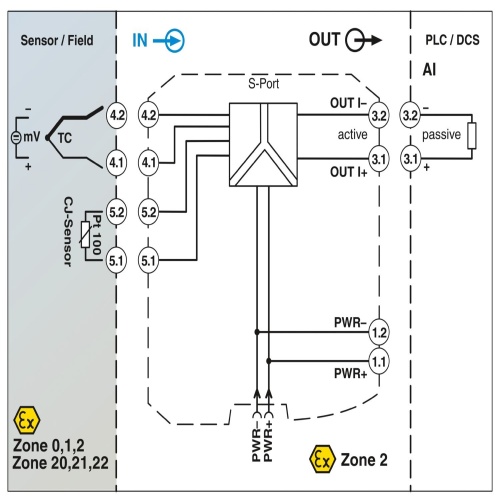 Phoenix Contact 1050233 An ex-temperature transducer is an device that takes the temperature signals from thermocouples installed in Ex zones and from mV sources, processes them into a 0/4…20 mA signal, which can then be transmitted to a load located in a safe area. This device is also fully programmable, allowing for customizable settings. Additionally, it features three-way isolation, a screw connection type, and SIL (Safety Integrity Level) certification.