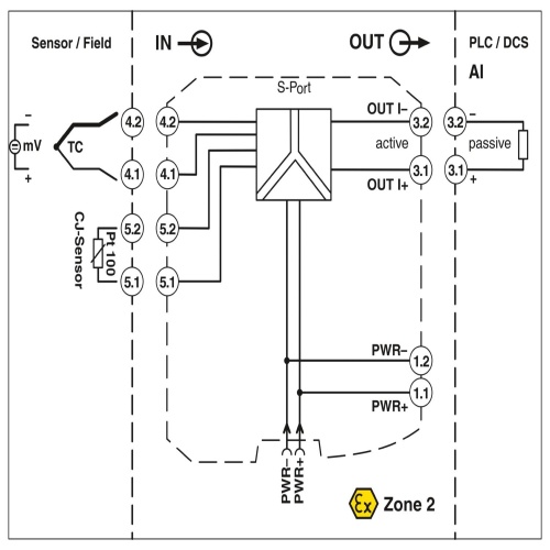 Phoenix Contact 1050228 A temperature transducer is a device that can convert analog signals from thermocouples or millivolt (mV) sources into 4-20mA digital signals, allowing for precise measurement and control of temperature levels. This device features flexibility with programming capabilities, three-way electrical isolation to ensure safe operation, easy screw connections, and SIL certification for compliance with international safety standards.