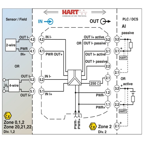 0/4 mA ... 20 mA input, intrinsically safe, [Ex ia], powered and not powered