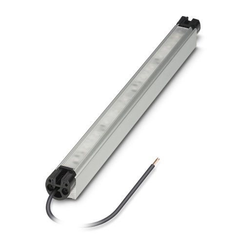 Phoenix Contact 2702476 The LED machine light has a 24V DC power source and emits light at angles of 95° vertically and 105° horizontally. It measures 336mm in length and is protected by an IP67 rating, allowing it to withstand water and dust ingress. The light can be swiveled and comes with mounting accessories for easy installation.