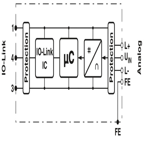 Phoenix Contact 2700336 An IO-Link/analog converter device named Axioline E is available for connection to an analog sensor with input voltage ranging from 0V to 10V. It features M12 connectors and comes in a straight version.