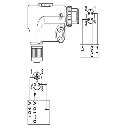 Connection to an IO-Link master with M12 connector (A-coded, 4-pos.)