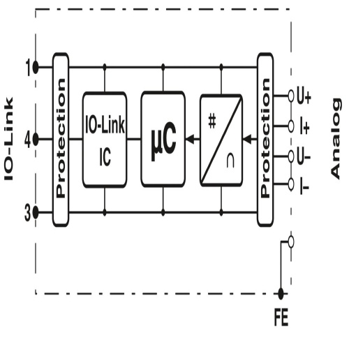 Phoenix Contact 2700352 The Axioline IO-Link/analog converter is designed to connect a temperature measuring resistor and features M12 connectors in a straight version configuration.