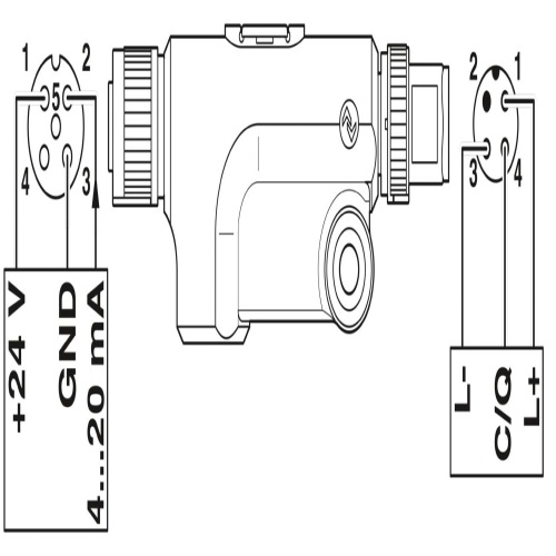 Connection to an IO-Link master with M12 connector (A-coded, 4-pos.)