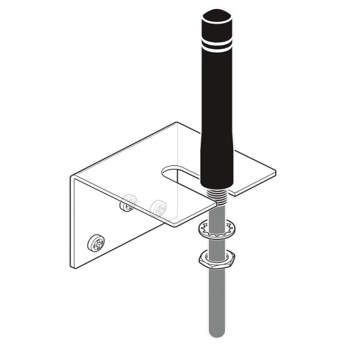 Phoenix Contact 2701362 An omnidirectional antenna suitable for panel mounting features a frequency range of 2.4 GHz and has a gain of 2 dBi. The device is protected by an IP65 rating, indicating its resistance to dust and water ingress. It comes with an RSMA male connector, accompanied by a 1.5m connecting cable, a mounting bracket, and mounting material for secure installation on a panel.