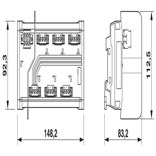 Phoenix Contact 2316307 A device coupler is designed specifically for connection to Foundation Fieldbus and PROFIBUS PA systems, featuring a unique configuration that accommodates six spur terminals which extend from the main coupler, allowing for direct connection to various fieldbus end devices.