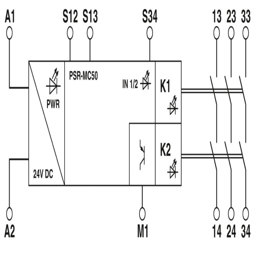 Phoenix Contact 2700553 This safety relay is designed for monitoring non-equivalent signal generators with a maximum SIL rating of 3, Cat. 4, PL e, and features two channels for non-equivalent operation, allowing for either automatic or manual start options, as well as monitored starts, three enabling current paths, and accepts a 24V DC power supply via plug-in screw terminal block.