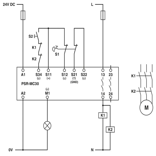 Phoenix Contact 2700498 A safety relay suitable for emergency stop and safety doors is available with SIL 3, Cat. 4, PL e ratings, and can operate on either one or two channels, whether automatically or manually initiated, with monitored start functionality and cross-circuit detection. Additionally, it has dual enabling current paths and uses a plug-in screw terminal block that accepts 24V DC power from the US input.
