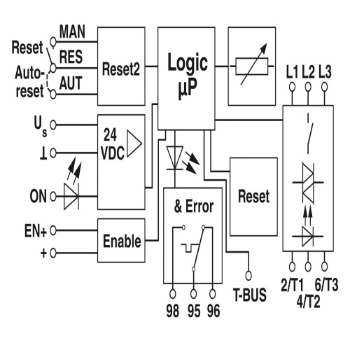 Phoenix Contact 2909557 The hybrid motor starter serves as a viable alternative to traditional protective circuits for starting 3~ AC motors with currents up to 3A, while also providing protection, compliance with ATEX regulations, and emergency stop capabilities reaching SIL 3. Additionally, it offers flexible configurations through group shut-down, supply, and relay extension options that can be easily connected via a DIN rail connector.