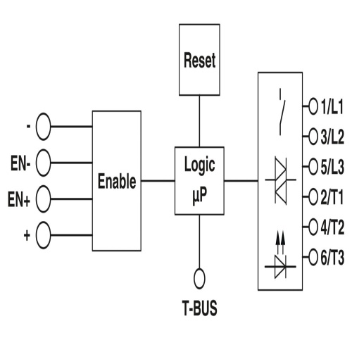 Phoenix Contact 2905143 A networkable hybrid motor starter is a device that can start AC motors with an output current of up to 9A, suitable for applications with voltages between 3AC and 500AC, featuring an emergency stop function, adjustable overload shutdown, and a push-in connection system allowing for easy DIN rail connector installation.
