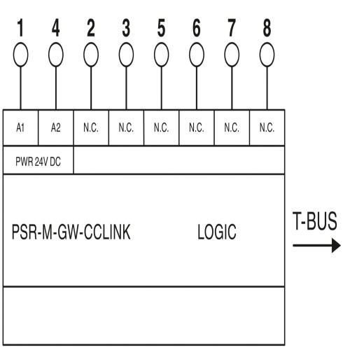 Phoenix Contact 1105128 The PSR-M base module is connected to a higher-level controller through a gateway that provides connectivity options including a CC-link and TBUS interface, as well as a plug-in screw terminal block with an included TBUS connector.