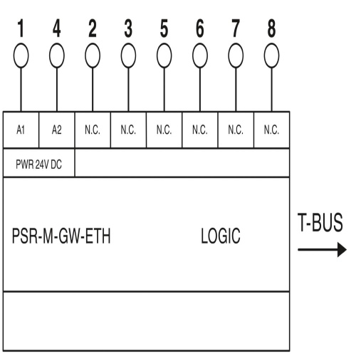 Phoenix Contact 1105107 The Gateway serves as a connection point between the PSR-M base module and higher-level controllers that support EtherNet/IP or other interfaces, also featuring a push-in terminal block and included TBUS connector.