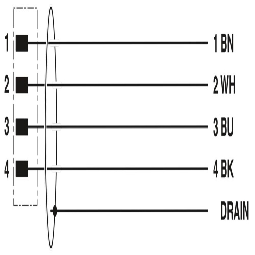 Phoenix Contact 1095855 The sensor or actuator cable features a 4-position design with PVC material, a gray color, and foil shielding, including a drain wire for added protection. The cable has an M12 angled plug and is coded as "A" on the free end, measuring 40 meters in length.