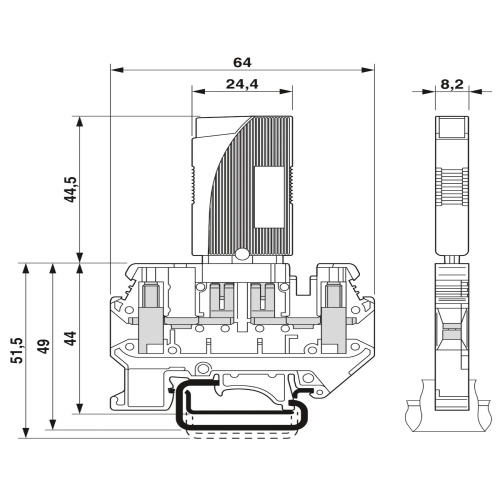 Phoenix Contact 0712194 A one-channel thermal device circuit breaker is designed to safeguard loads of up to 250V AC or 72V DC from overloads, featuring a fixed nominal current rating of 1A and suitable for use on fuse terminal blocks and flat plug-in fuses of type C as per the ISO 8820-3 standard.