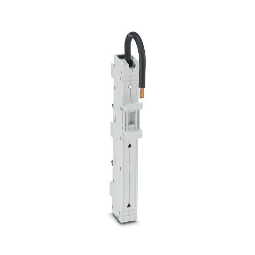 Phoenix Contact 1089356 A single-position adapter featuring the CrossLink interface is used to connect a miniature circuit breaker specifically designed for use on a single phase circuit (L1) with a one-piece DIN rail and insulated conductors of 8AWG (10mm2) gauge.