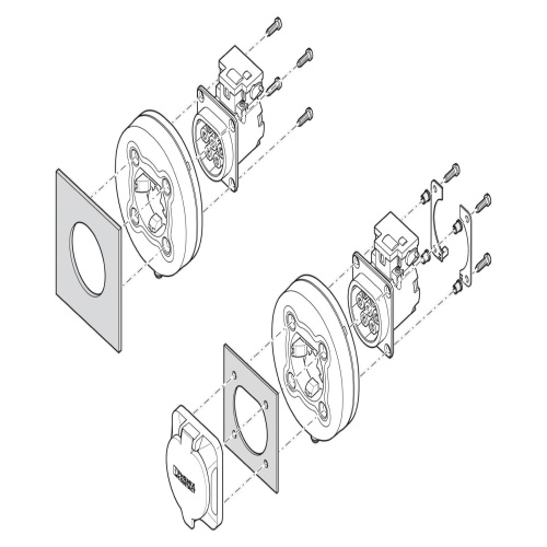 Phoenix Contact 1527539 The CHARX product is a type of modular connector designed for use in infrastructure charging sockets. It features a protective cover, comes in various configurations, and includes accessories such as a front mounting option with a self-locking mechanism that utilizes an M5 thread, all while adhering to the IEC 62196-2 standards, and does not have a logo on it.