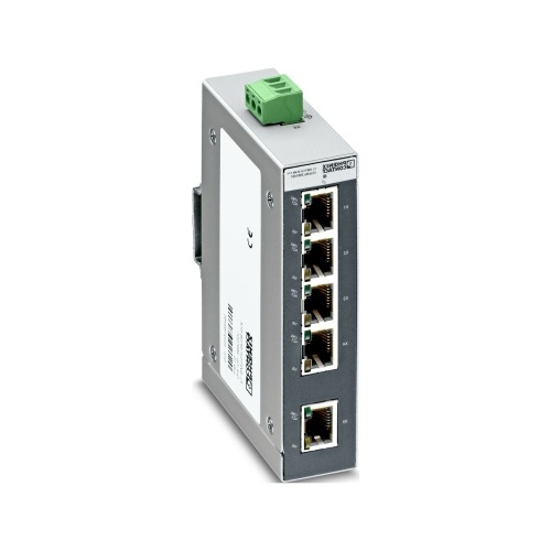 Phoenix Contact 2891001 An Ethernet switch with five built-in RJ45 ports features automatic detection of data transmission speeds, allowing it to seamlessly switch between 10 and 100 Mbps connections. Additionally, the device includes an autocrossing function, enabling fast and reliable communication over Ethernet networks.