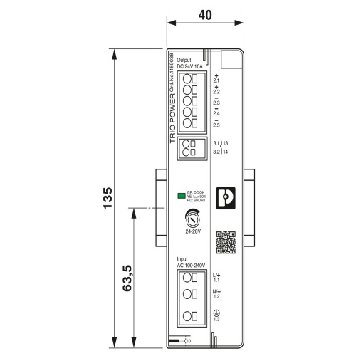 Phoenix Contact TRIO3-PS/1AC/24DC/10 - TRIO, Power supply, 100 VDC - 240 VDC, IP20 - 1159038