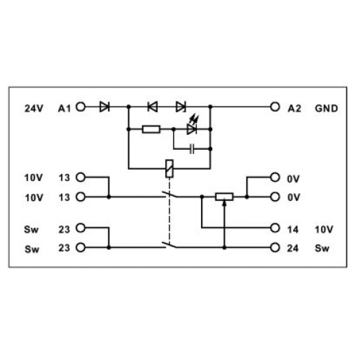 Phoenix Contact 2942137 A device used to adjust and select setpoints in a controlled environment is powered by a 24-volt control signal, utilizing a 10 kilohm resistor.
