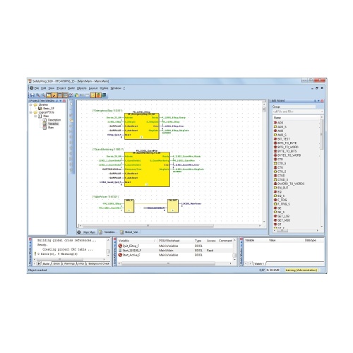 Phoenix Contact 2700442 Programming software for Phoenix Contact Contact's INTERBUS-Safety systems and PROFIsafe controllers offers a graphical user interface conforming to IEC 61131-3 standards in three primary formats: function block diagram (FBD), ladder diagram (LD), and structured text (ST). The provided libraries, which include Basic_SF, MatHandling_SF, Muting_SF, SafeMode_SF, and TwoHand_SF, can be utilized across individual projects as part of the PLCopen standard.