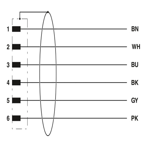 Phoenix Contact 1522367 The sensor/actuator cable is a 6-position, halogen-free PUR cable with a black-gray color (RAL 7021) and is shielded. It has an angled M8 plug on one end and is coded "A" at the other free end. The total length of the cable is 5 meters.