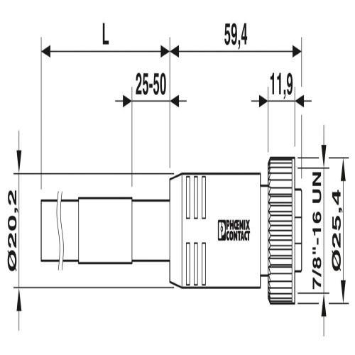 Phoenix 1416655 PVC,Yellow 2 m Free Cable End Socket Straight 7/8"-16UNF 6-position A - standard Anodized aluminum Power cable