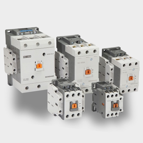 Benshaw RC-18A-DC24 - Benshaw's Control Products feature the RC/RSC Series contactors, designed for precise motor control and efficient switching of loads up to 690 VAC. These contactors cover NEMA sizes 00–7, IEC ratings from 9 to 800 Amps, and UL ratings up to 600 HP. Notable features include the world's longest lifespan, compatibility with global standards, direct mount thermal overload relays, and modular accessories. The RediStart™ line, meeting high standards, offers DIN rail mountability, integral coil surge suppression, and a finger-proof design. Compact and efficient, these contactors provide reliable solutions with standard features like phase barriers, unit identification markers, and dual auxiliary contacts.