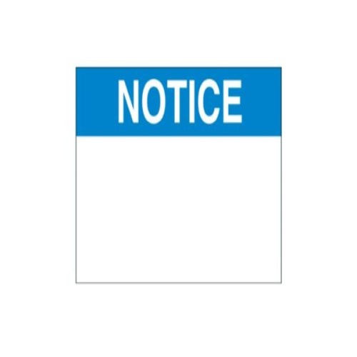 Thermal transfer printable safety label, 4.00" x 6.00" (101.6mm x 152.4 mm), notice header, polyester adhesive, blue/white, 100 labels/roll, 1 roll/package.