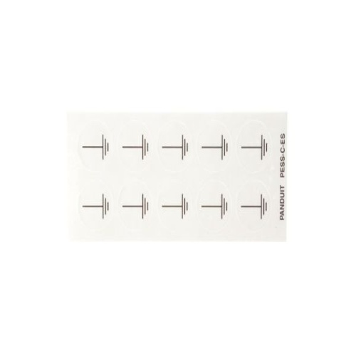 Conductor identification label, 0.79" (20mm) marker diameter, Earth (ground) symbol, polyester adhesive, black/white, 10 labels/card, 10 cards/package. Dotted line represents cut line and will not show on label.