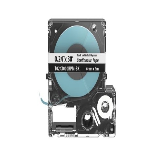 The T024X000BPM-BK Continuous Tape Cassette includes both label material and ribbon for easy changeover. Print custom pipe markers, voltage markers, signs, bin markers, and network identification labels on demand. For flat label applications only. For use with the MP300, MP200, MP100, and MP75 printers. Polyester. 0.229" x 30' (5.82 mm x 9.1 m). Color Black on White. 1 cassette per package.