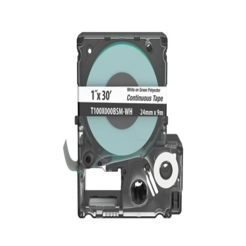 The T100X000BSM-WH Continuous Tape Cassette includes both label material and ribbon for easy changeover. Print custom pipe markers, voltage markers, signs, bin markers, and network identification labels on demand. For flat label applications only. For use with the MP300, MP200 and MP100 printers. Polyester. 1.0" x 30' (25.4 mm x 9.1 m). Color White on Light Green. 1 cassette per package.