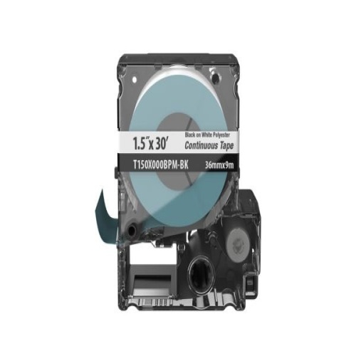 The T150X000BPM-BK Continuous Tape Cassette includes both label material and ribbon for easy changeover. Print custom pipe markers, voltage markers, signs, bin markers, and network identification labels on demand. For flat label applications only. For use with the MP300 printer. Polyester. 1.417" x 30' (36 mm x 9.1 m). Color Black on White. 1 cassette per package.