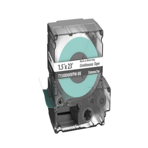The T150X000VPM-BK Continuous Tape Cassette includes both label material and ribbon for easy changeover. Print custom pipe markers, voltage markers, signs, bin markers, and network identification labels on demand. For flat label applications only. For use with the MP300 printer. Vinyl. 1.5" x 23' (36 mm x 7 m). Color Black on White. 1 cassette per package.