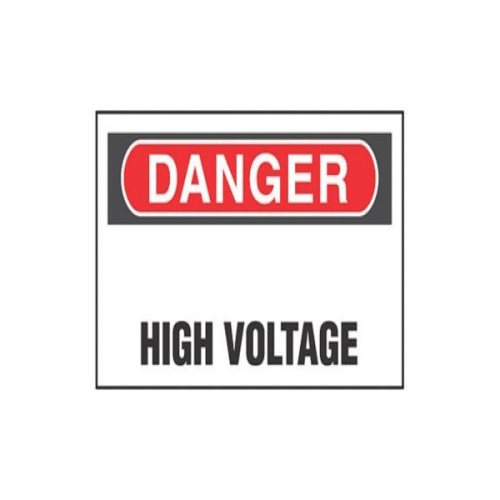 Electrical label in dispenser, 1.5" W x 1.0" H, 'Danger high voltage' (legend), polyester adhesive, red and black/white, 200 labels per package.