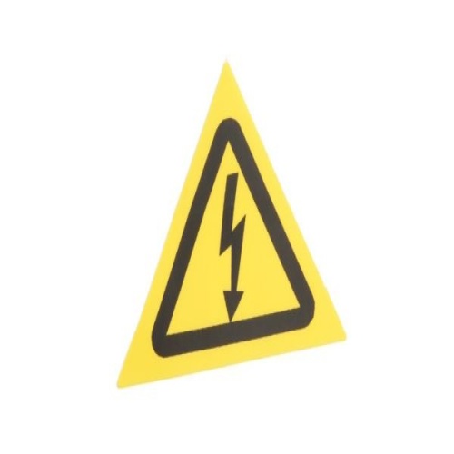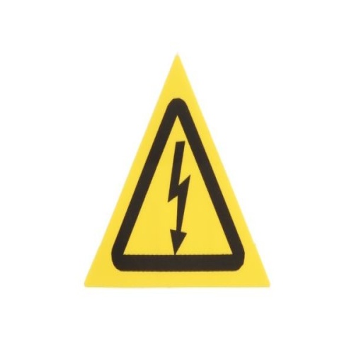 StrongHold WL32Y ISO Risk of Electrical Shock Labels are adhesive backed and triangular shaped. They are 1.5” (38.10mm) triangle width, for indoor/outdoor use. Made of vinyl, are yellow and black in color and come in packages of 50.