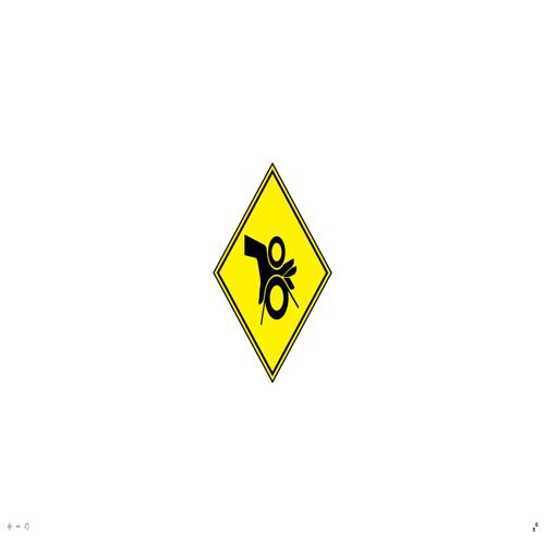 Polyester adhesive sign, 2.25" H x 2.25" W, blank header, 'Pinch point pictogram' , polyester adhesive, black/yellow, 4 sign/card, 5 cards/package.
