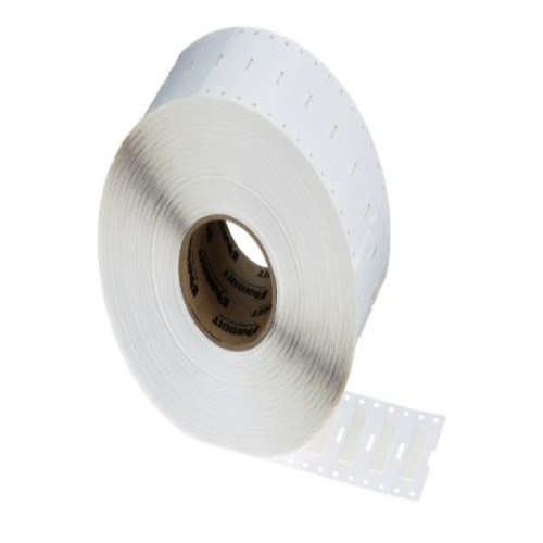 The H050X044H1T-B Military-Grade Polyolefin Heat-Shrink Label is a single-sided printable. It offers crisp, clear legends with superior readability for quick and easy label production. The heat-shrink sleeve is designed to provide a clear, reliable, and durable way to identify wires and cables. Designed for use with Panduit TDP printers. Shrink ratio 3:1. 0.5" x 0.44" (12.7 mm x 11.2 mm). Color White. 10,000 labels per roll.