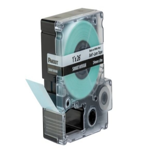 Panduit PXE™ S000X100VAM MP Printer Cont. Self-Lam Cassette, Vinyl, Black/White, 1"W