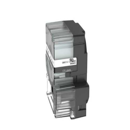 The S050X150VAM Die-Cut Self-Laminating Label Cassette includes both label material and ribbon for easy changeover. Self-laminating adhesive labels for wire/cable identification include a white print-on area and a clear overlaminate. For use with the MP300 printer. Vinyl. 0.50" x 1.50" (12.7 mm x 38.1 mm). Wire/Cable Size Range Cat. 5e/Cat. 6. Color Clear/White. 175 labels per cassette. 1 cassette per package.